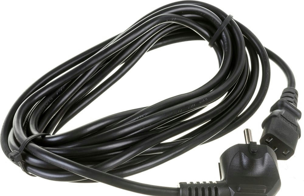 Шнур питания C13-Schuko угловая 3х0.75, 220В, 10А черный 5 метров LAN-PP13/SHA-5.0-BK