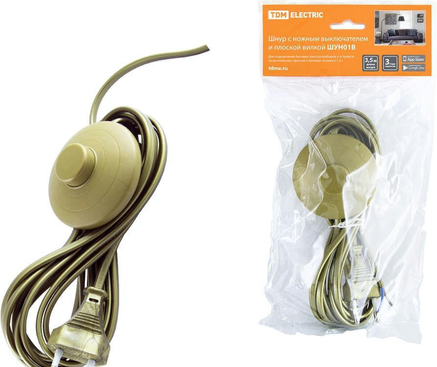 Шнур с ножным выключателем и плоской вилкой ШУН01В ШВВП 2х0,75мм2 3,5м. бронза TDM