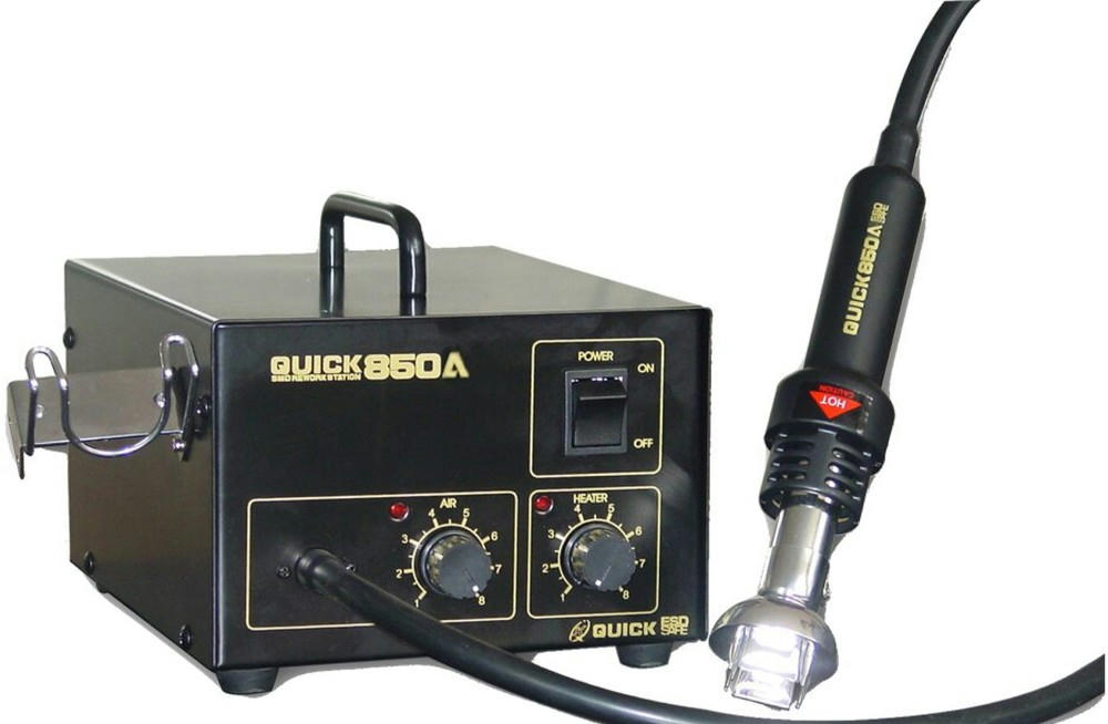 Термовоздушные паяльные станции серии Quick-850 предназначены для работы с SMD компонентами в корпусах QF, PLCC, SOP, BGA и т.д. Все станции имеют ESD исполнение с защитой от зарядов статического электричества.