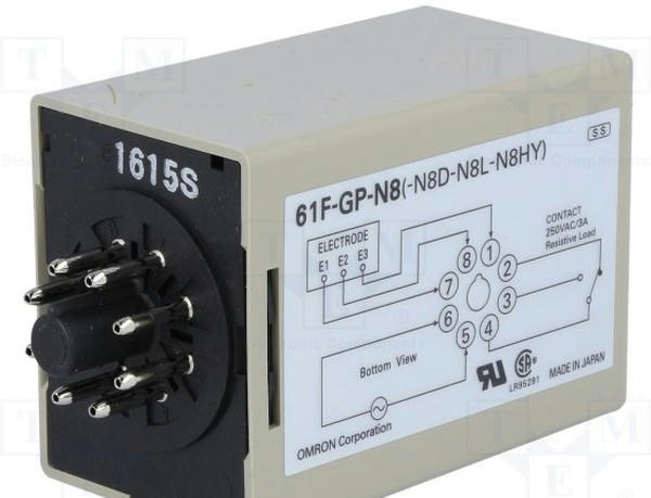 Устройство контроля уровня токопроводящих вещевств серии 61F, монтаж вставной, компактный 8-pin тип, напряжение питания 230 V AC